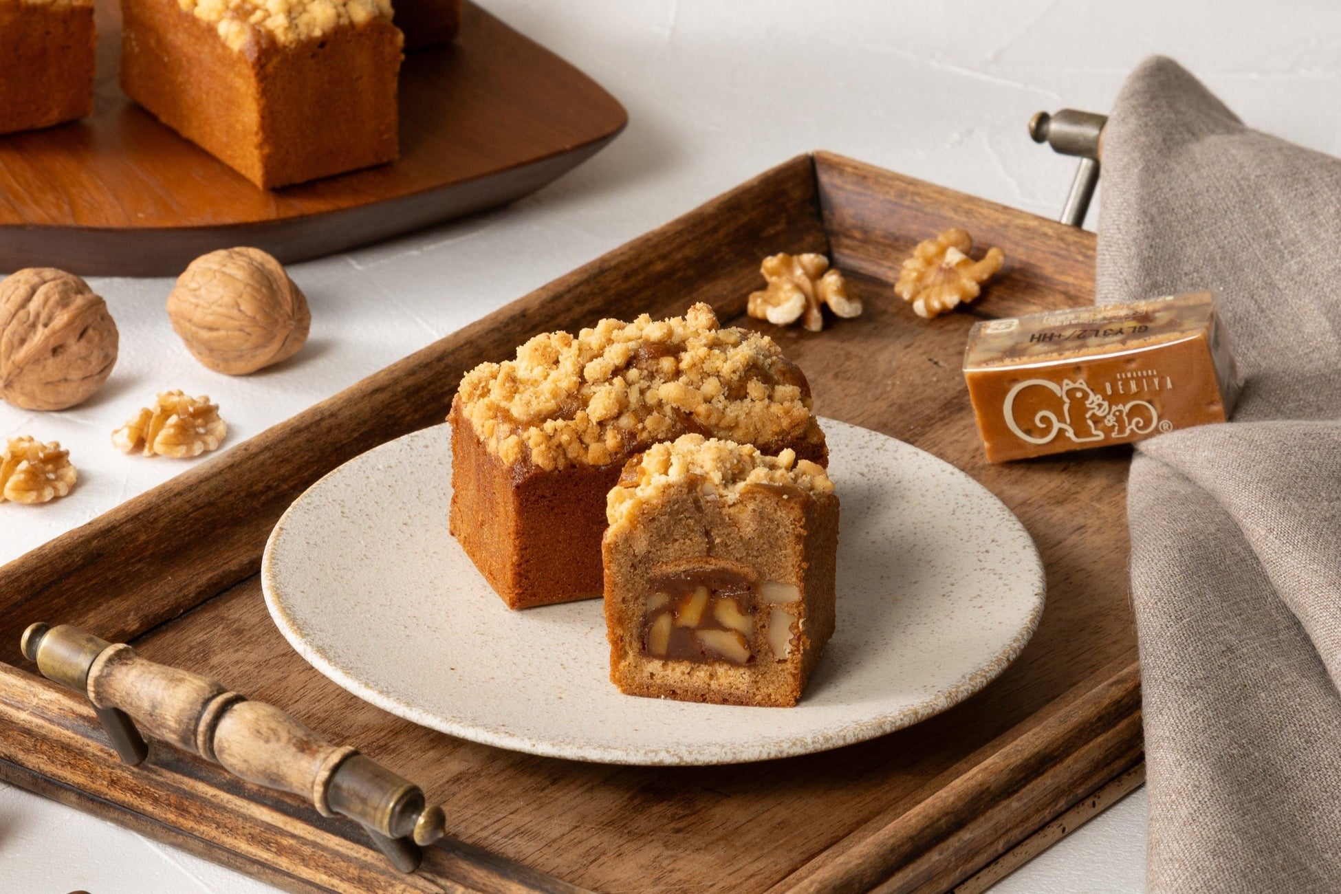 リスくんたちが一息つくお宿(INN)をイメージし、コーヒーのパウンドケーキでクルミッ子を包んだ「クルミッ子INN」をミニサイズでご提供。(税込540円)(*)