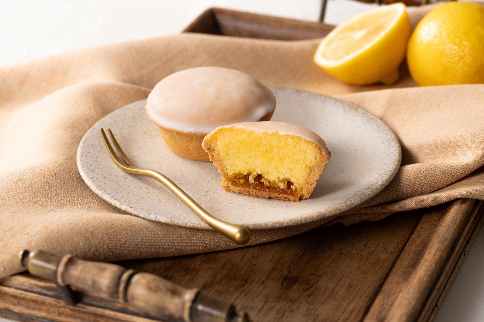 さっくりとしたタルトカップに、しっとり食感のレモンケーキとゆずマーマレードをとじ込めて焼き上げました。(税込450円)(*)