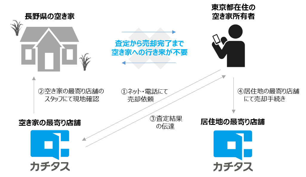 弊社は全国120店舗以上に展開しており、そのネットワークを駆使することで、遠方の空き家まで移動することなく、売却することが可能です。弊社のサービスを利用することで、空き家の維持管理に必要な移動コスト(交通費・時間・労力)の削減が可能となります。