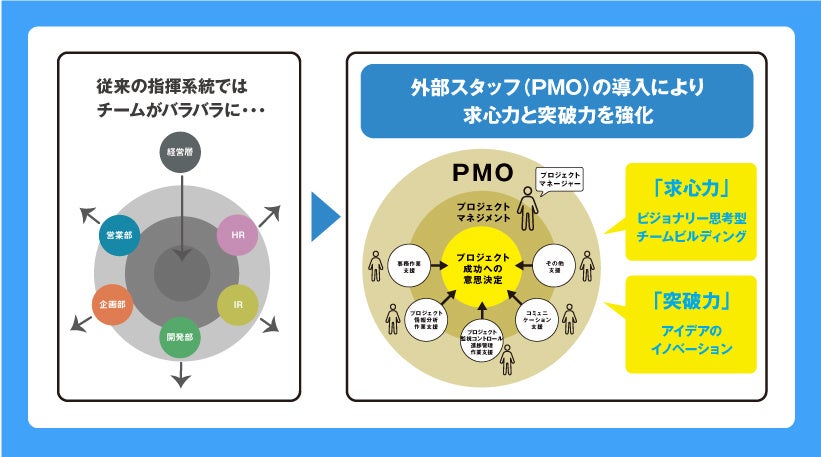 部門を横断したプロジェクトには、このような外部の専門スタッフの力が存在する方が効率的かつ、具体的にプロジェクトの実働にまで繋げることができます。