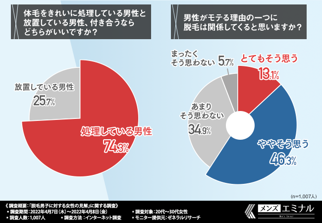 そこで今回、メンズ医療脱毛クリニック『メンズエミナル』(https://mens-eminal.jp/lp/?refmedia=31073)は、20代~30代の女性を対象に、「脱毛男子に対する女性の見解」に関する調査を実施しました。
