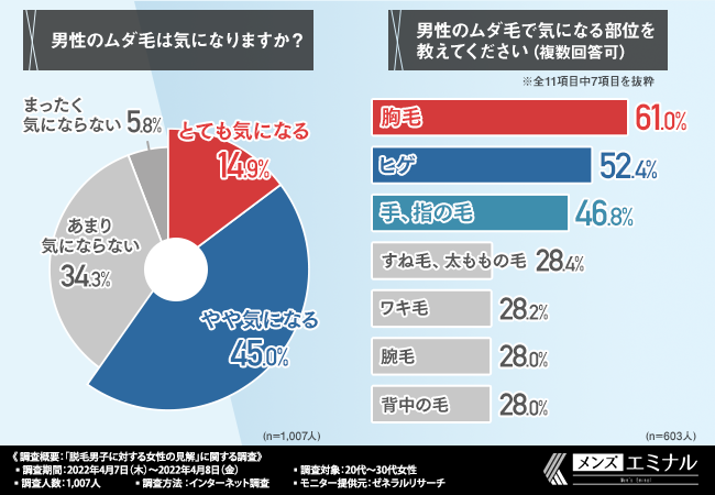 それでは、男性のムダ毛そのものに対してはどのように感じているのでしょうか?