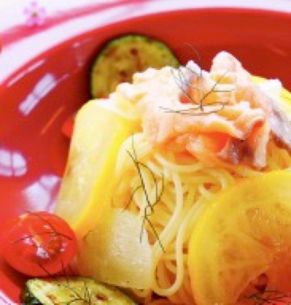 マリネしたサーモンとシロップ漬けにしたレモンをのせて。暑い日におすすめ!