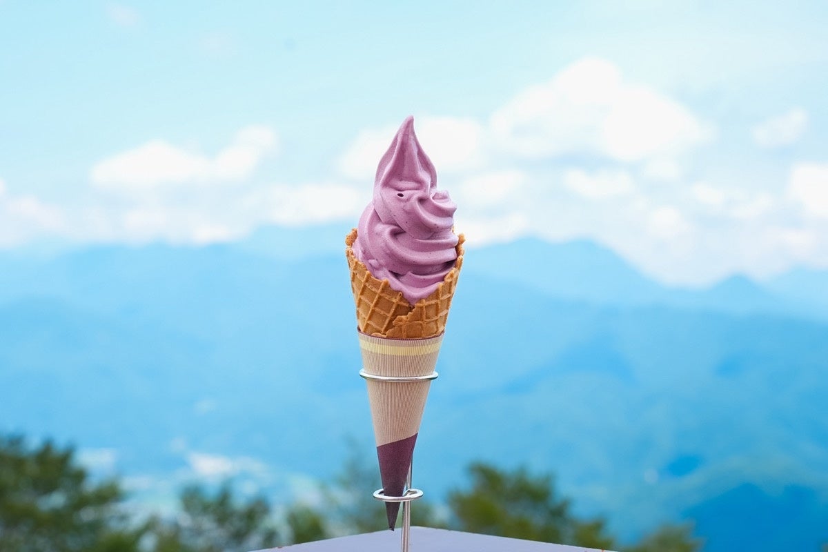 夏の山頂で食べたいソフトクリームは3種類ご用意しています。昨年販売して大人気だった、地元農家・白馬農場のブルーベリーをふんだんに使用した「白馬産ブルーベリーソフト」が復活します!