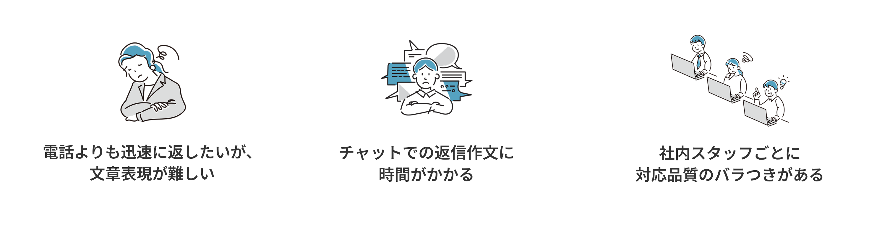 「どう書くと失礼にならないか」「丁寧にしたいが長くなりすぎる」など、1通のチャット返信に思った以上の時間がかかり、本来の業務に割ける時間が減ってしまうという声が多く聞かれます。