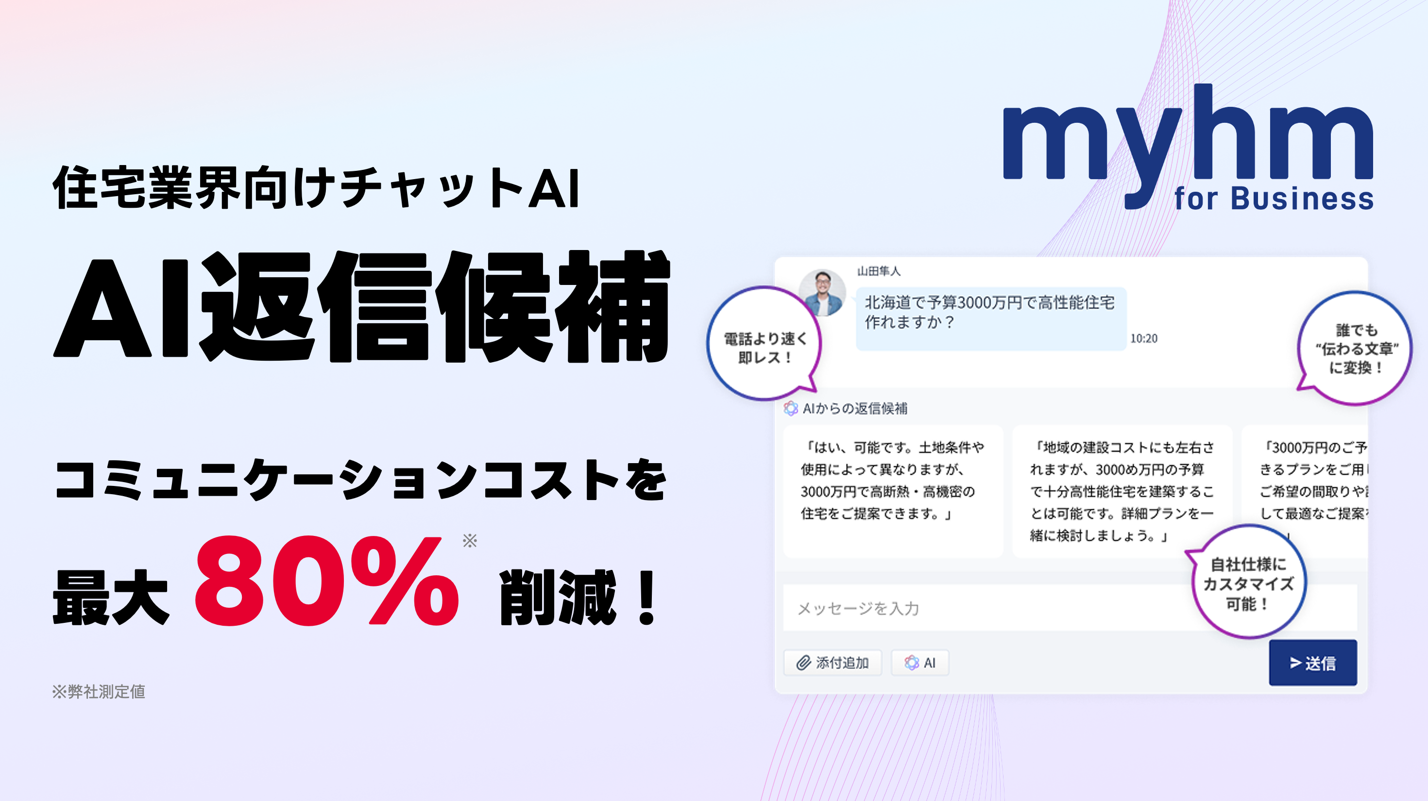 マイホム、住宅業界向けチャットAI「AI返信候補」提供開始。