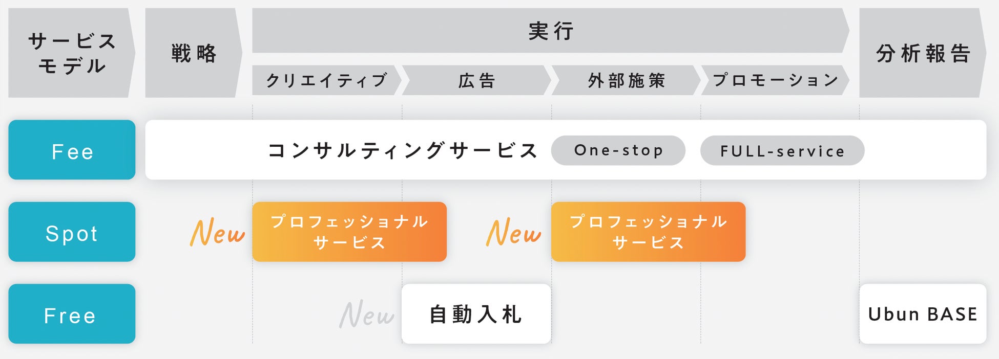 『UbunBASE』では、商品ページのクリエイティブ制作、インフルエンサーのキャスティング&タイアップ投稿をスポットでウブンのコンサルティングチームに依頼することができるプロフェッショナルサービスを開始しました。本サービスを利用するには『UbunBASE』の導入が必須となります。