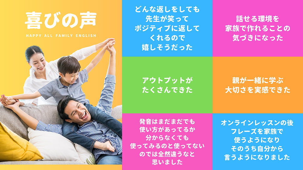 レッスン後もすぐ家族で使えるフレーズ学習を中心として