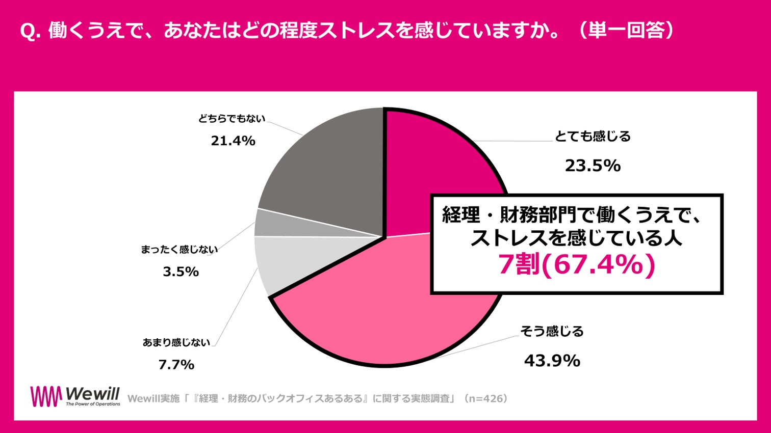 スタートアップから100年企業そして上場企業まで、幅広い企業の管理部門の生産性と信頼性を向上させる進化系BPaaS (※1)「SYNUPS BACKOFFICE」を展開する株式会社Wewill(本社:静岡県浜松市、代表取締役社長:杉浦 直樹、以下「当社」)は、東京都内勤務で経理・財務に従事するビジネスパーソン426名を対象に、「経理・財務のバックオフィスあるあるに関する実態調査」を実施いたしました。