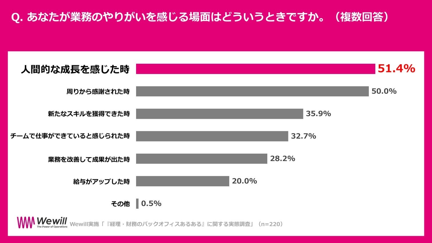 やりがいを感じる場面は、51.4%で「人間的な成長を感じた時」がトップ。