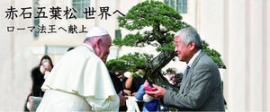 (写真:2019年赤石五葉松盆栽をローマ教皇フランシスコに献上)