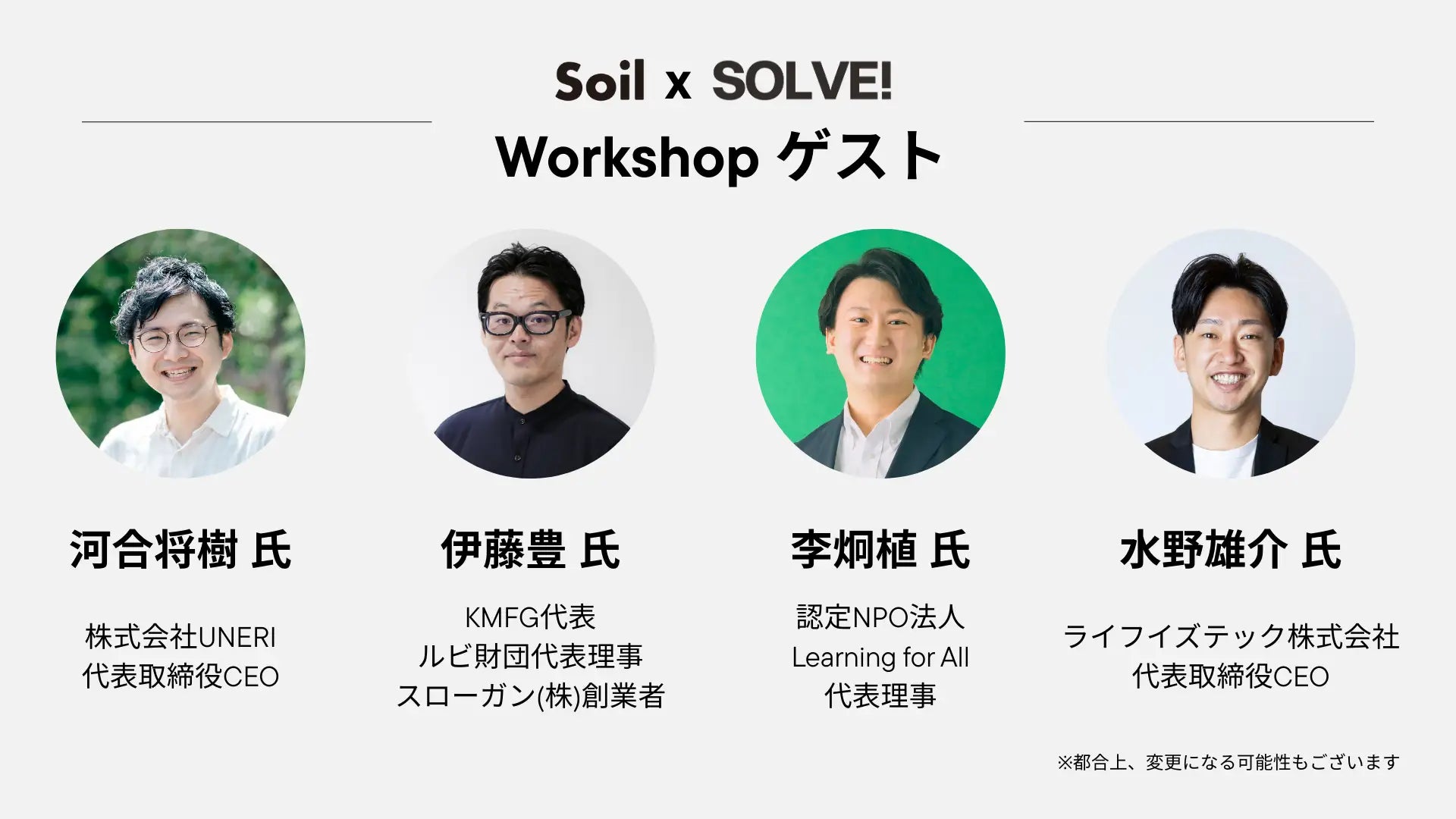※Soil 100には、1日目・2日目の全てのプログラムに参加した方のみ応募可能です。