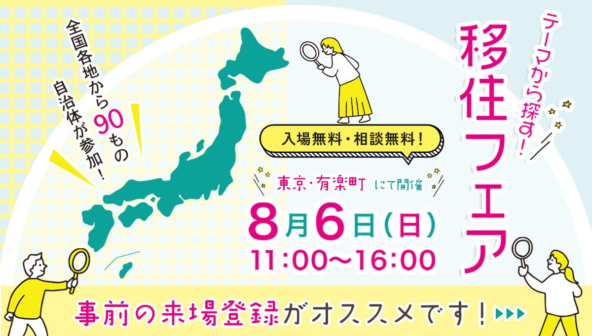 「テーマから探す!移住フェア」を8⽉6⽇ 有楽町・東京交通会館にて開催します。
