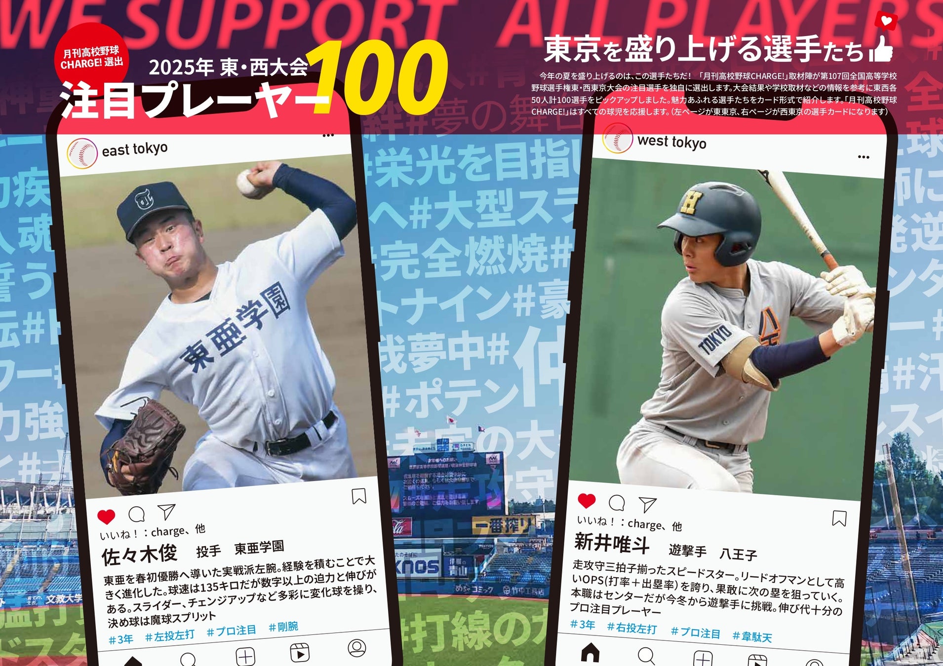 2025年夏を盛り上げるのは、この選手たちだ!第107回全国高等学校野球選手権東・西東京大会の注目選手100人をピックアップ。魅力あふれる選手たちがカード形式で掲載されています。