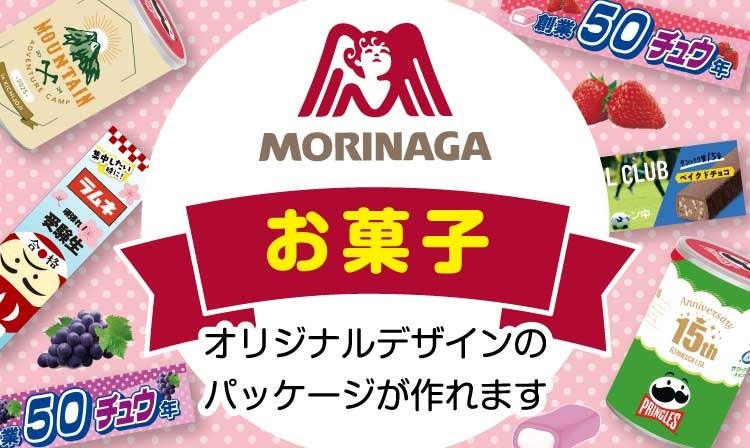 知名度抜群のお菓子に、自由な発想でオリジナルデザインを印刷できます。今回取り扱いを開始した森永製菓のオリジナルお菓子は、全4種類です。