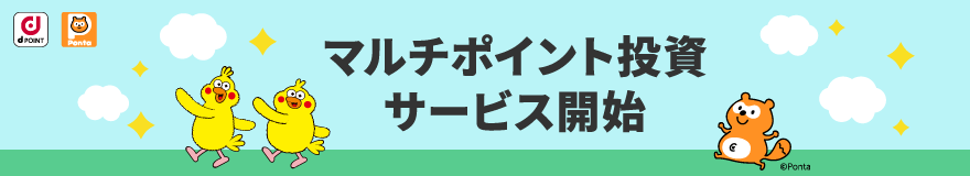 これにより、お客様は株式会社NTTドコモが運営する共通ポイントサービス「dポイント」と「Pontaポイント」という日本を代表する2大共通ポイントがたまる、つかえる、マルチポイント投資サービスをご利用することが可能になります。