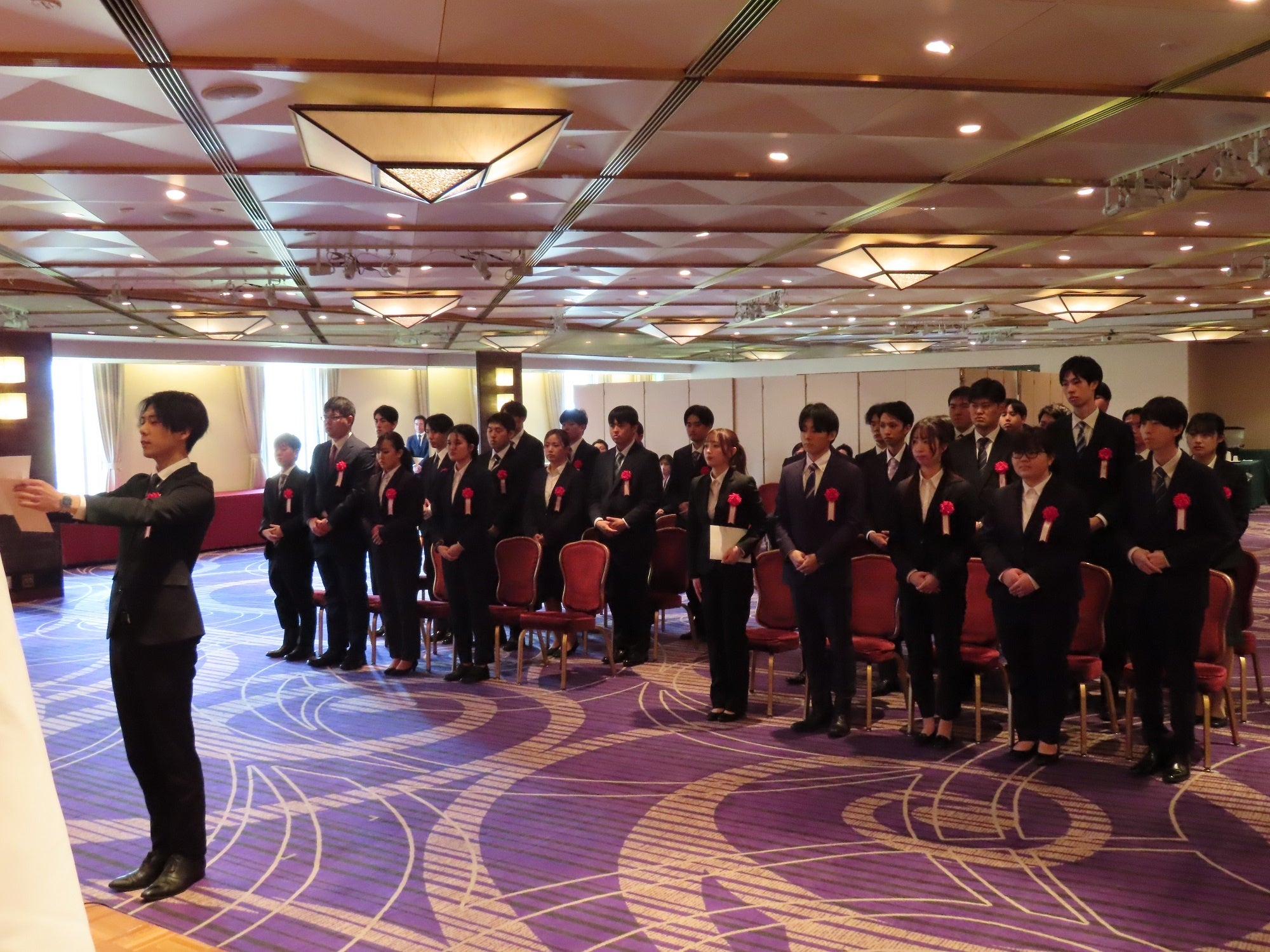 「私たち、学生時代の後半をコロナ禍の中で過ごしました。激変していく生活様式、世界経済 に与えられた影響、そして通学することすらままならない状況の中で気持ちが沈んでいきまし た。しかし、就職活動を通じ「エンターテイメントの本質を追究するサービスと誠実な心で明 るい社会づくりへの貢献をめざす」とう延田グループの企業理念を知り、未来に繋がる希望を 見出した私たちは延田グループの一員となるべく、入社を決意しました。 本日の気持ちを忘れず、絶え間ない研鑽を積むことで、延田グループが照らす希望の光とな るべく尽力していくことをここに誓います。」 2024 年度入社のスタッフは、5 日間の全体研修で「NOBUTA GROUP 社員としての基礎(事 業活動および業務に必要なスキルやマインドセットの習得など)」や「社会人としての基礎知 識」を習得し、配属後1年間は、人事部教育課による定期面談やフォロー研修、各店舗のメン ターによる実務指導やメンタルフォローにて入社スタッフの不安に対応できるような関係と、 キャリアプランの構築ができる機会を設定しております。