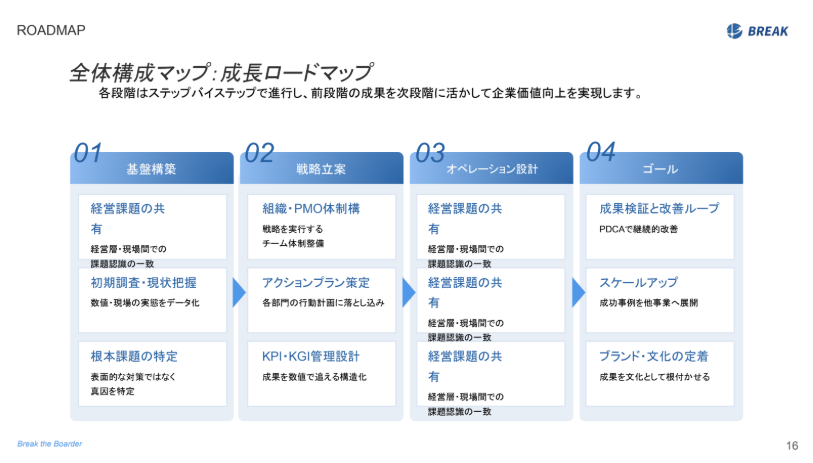 こうした課題を解決するため、株式会社ブレイクでは、戦略設計から成果定着・内製化までを一つの設計思想で支援する本サービスの提供を開始しました。