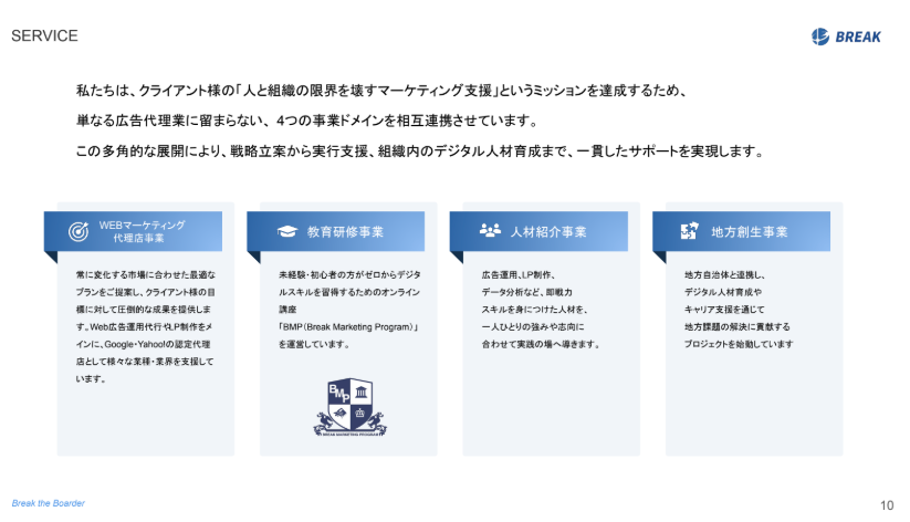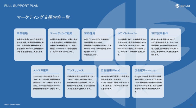 戦略思考と実行力を統合したBtoB特化型支援が、ブレイクの強みです。