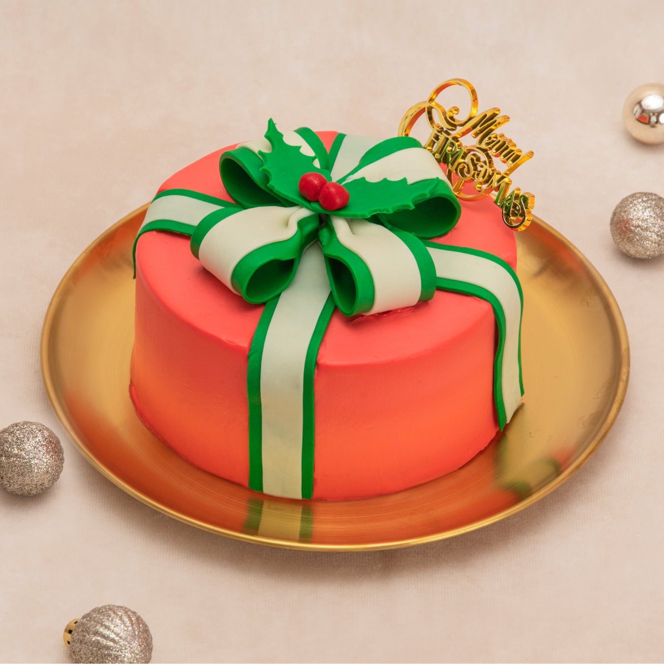 ギフトボックスをイメージした新デザインのクリスマスケーキ。赤いクリームをベースに使用し、細部まで拘ったデザインがパーティーを華やかに彩ります。