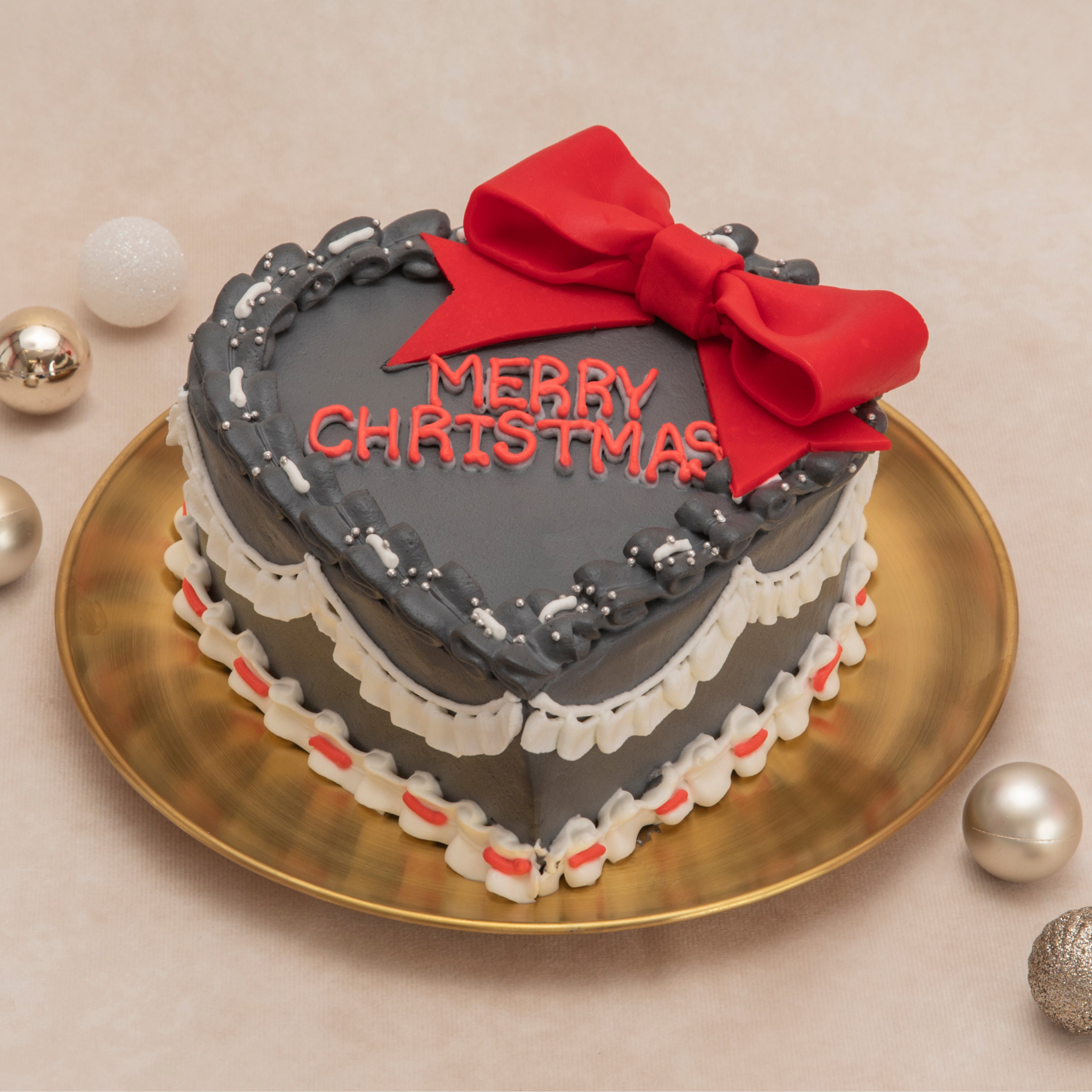 ハートに大きなリボンをつけて、愛のこもったクリスマスプレゼントを表現しました。彼と一緒に、ケーキの色やクリームを選ぶ時間、ケーキが届くのを待つ時間、一緒に食べる時間、すべてが私にとってのクリスマスプレゼントになりました♡