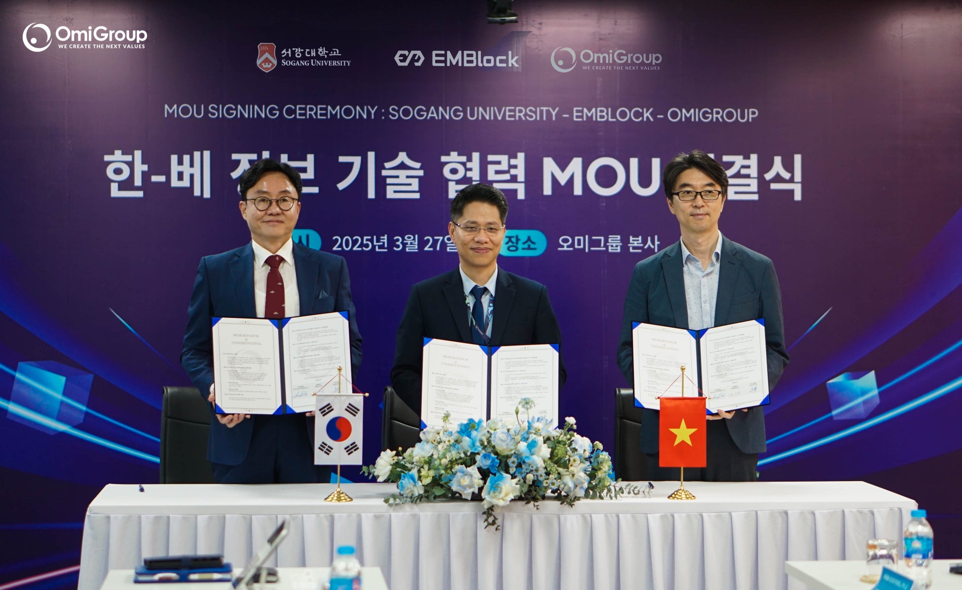 2025年3月27日、OmiGroupは韓国を代表する名門の一つである西江大学および、その関連スタートアップ企業であるEMBlock Incと、AI技術の研究およびデジタルヘルス分野への応用に関するMOU(基本合意書)を締結しました。調印式には、西江大学情報技術学部長 兼 Web3.0技術研究センター長のパク・スヨン博士、EMBlock Inc副代表のキム・ギガン氏、OmiGroupの代表チャン・クオック・ズンおよび経営幹部が出席しました。西江大学が持つ高度な研究力と、EMBlock Incの技術開発力、そしてOmiGroupの実装ノウハウを融合させることで、医療分野の課題解決に特化した技術ソリューションの開発を目指します。