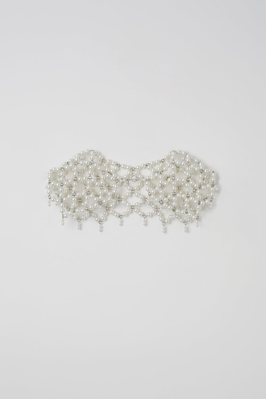 コーディネートのアクセントになる「Snow cover pearl collar」「 Snow cover pearl belt」