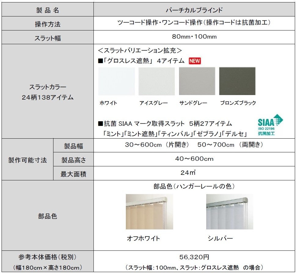 省エネ・抗菌への取り組みを強化 タテ型ブラインド「バーチカルブラインド」 スラットバリエーションを拡充