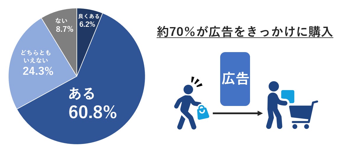 約70%の人が「ある」と回答。店頭での広告は購買行動に大きく寄与することが判明。