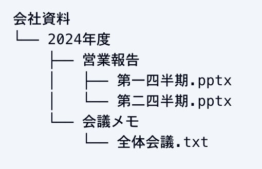 報告書やプレゼン資料で、ファイルやフォルダの構造を説明したいとき