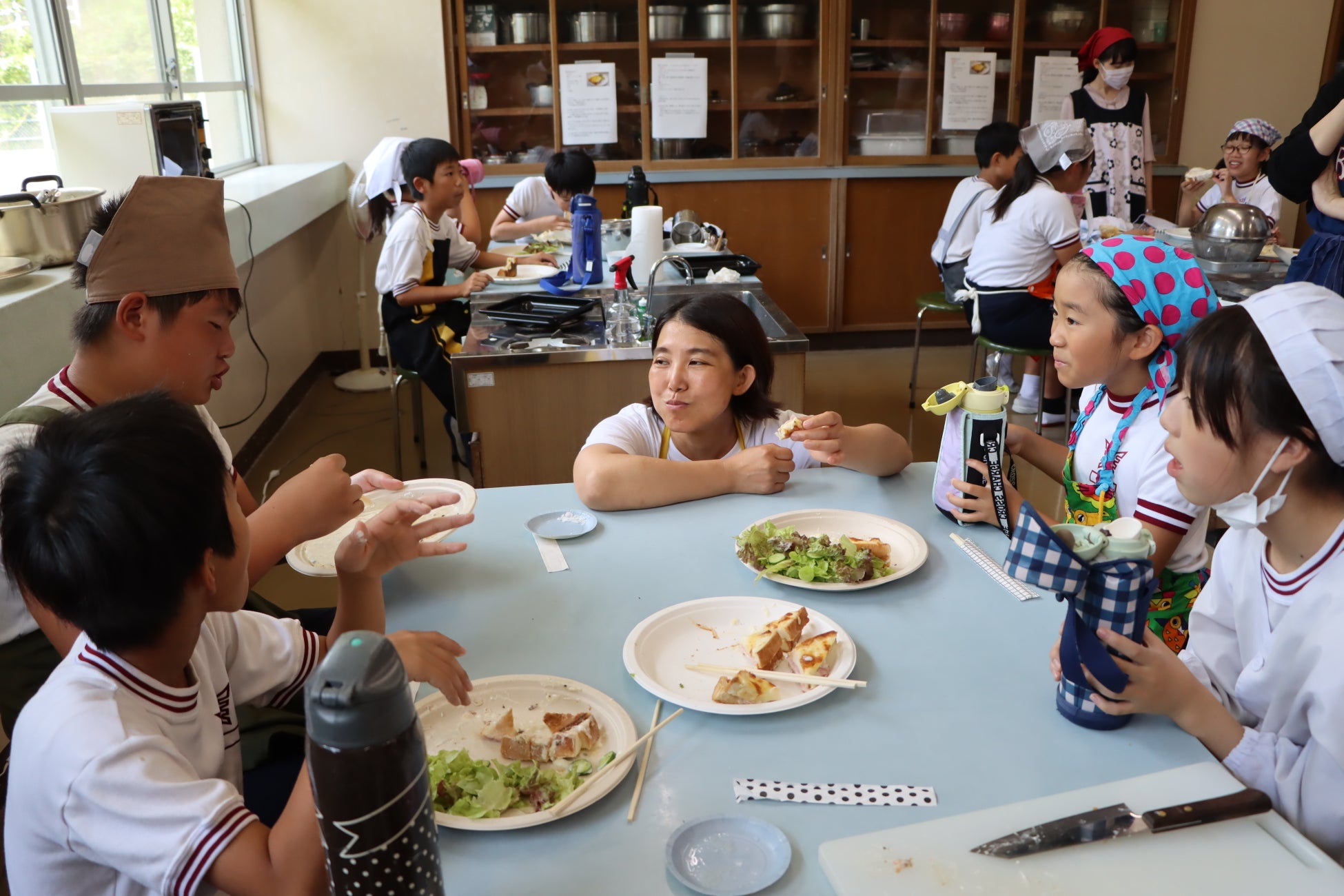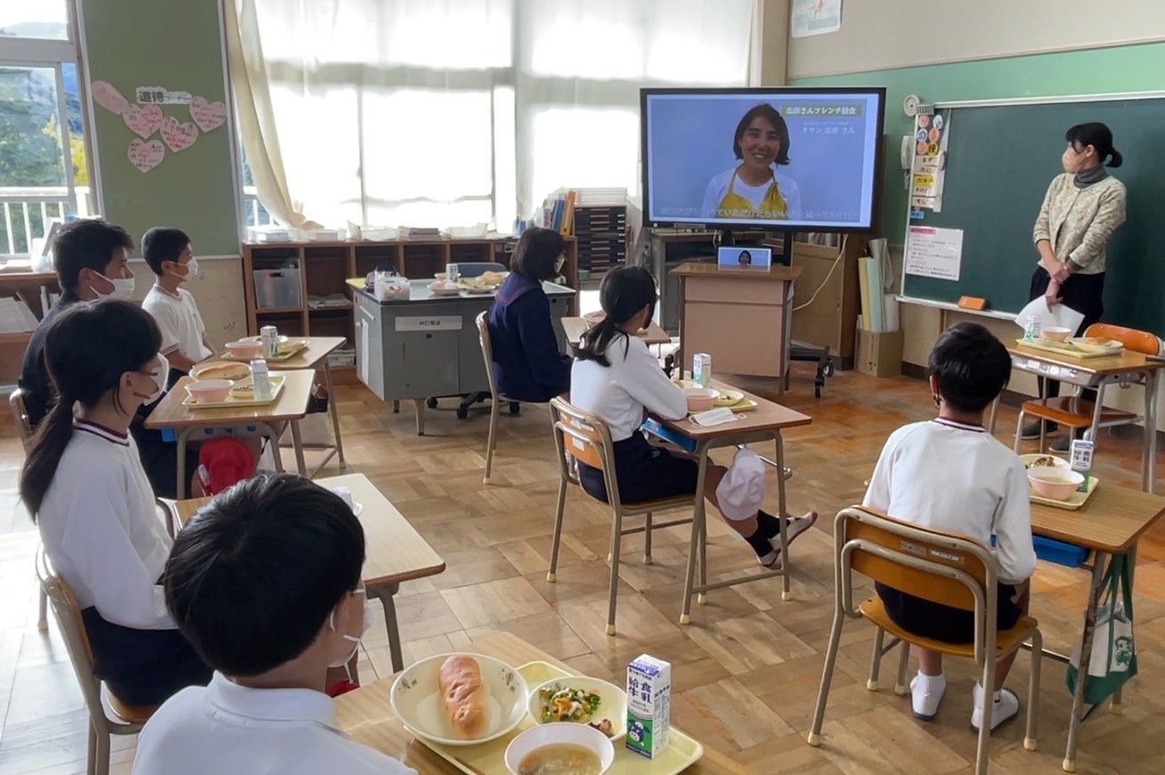 給食前にはタサン志麻さんから「フランス料理は基本的に塩だけで味付けをし、野菜の甘さなどを出しています。今日はこれがフランス料理なんだなと感じながら手ベてください」と児童・生徒らにビデオメッセージが届けられました。タサン志麻さんの母校である向陽小学校の児童は、「今日はフレンチ給食ということで、日本料理と違う味付けでとてもおいしかった」「野菜の甘みが感じられた。お肉もマスタードの味が口の中で広がり、とてもおいしかった」と特別な給食を喜んでいました。