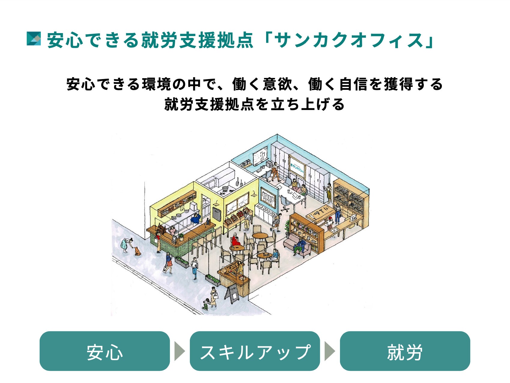今回の飲食事業スタートはその第一歩。サンカクオフィスの構想を着実に実現するとともに、行政や企業、地域の皆様と連携して若者が安心して活躍できる事業を創出して参ります。