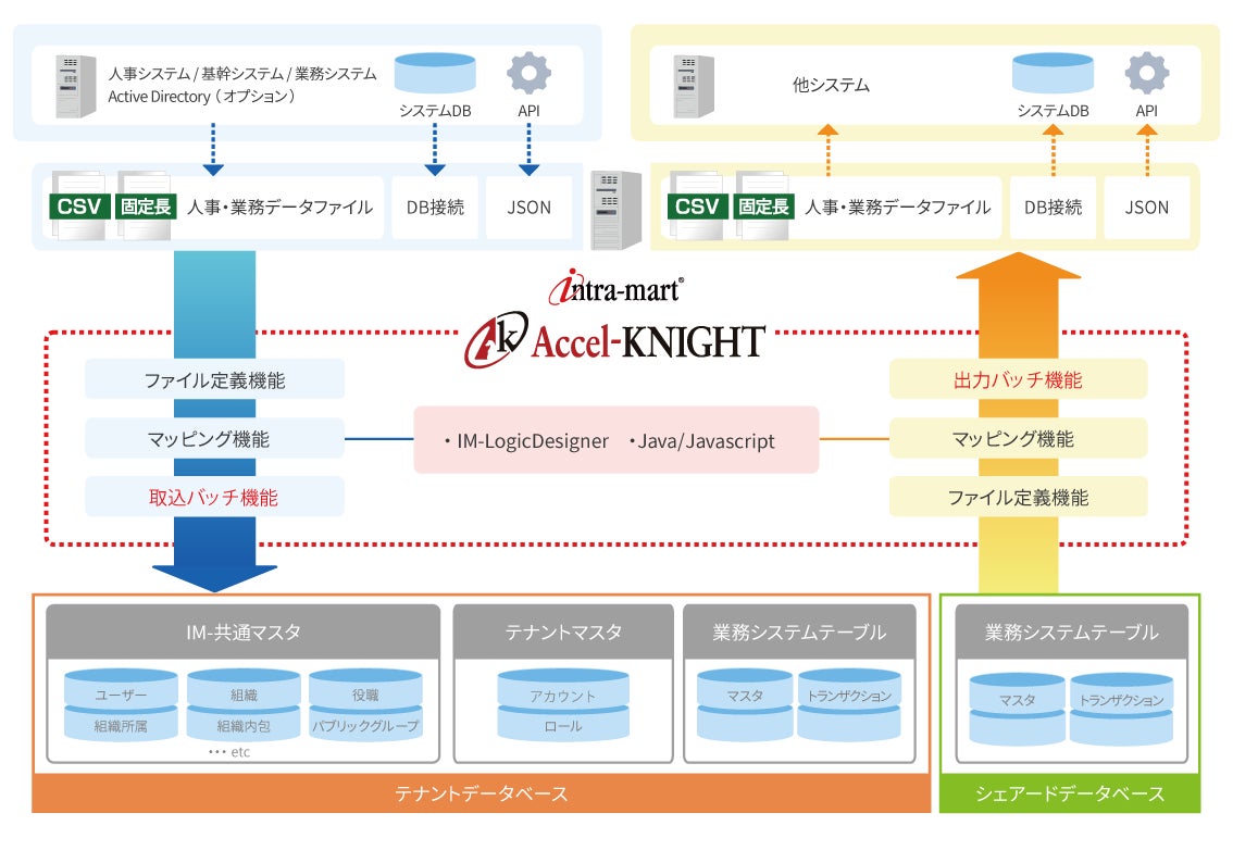 Accel-KNIGHTは、intra-martに特化した製品で、ユーザー情報、組織情報、所属情報などから