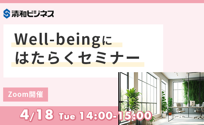 株式会社清和ビジネス(本社:東京都中央区)は、2023年4月18日(火)に企業の経営者、総務・人事担当者を対象にオンラインセミナーを開催いたします。今回のセミナーでは『Well-beingに「はたらく」』をテーマに掲げ、ウォンテッドリー株式会社(本社:東京都港区)、清和ビジネスが講演を行います。