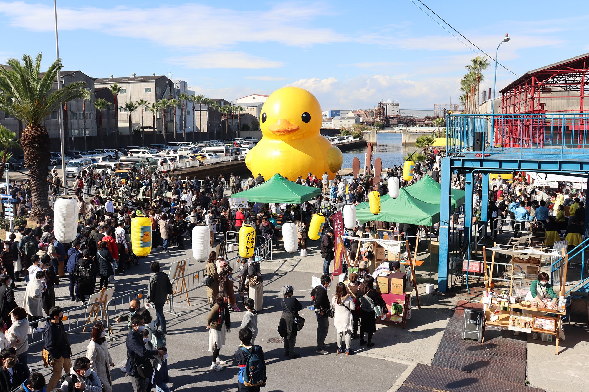 オランダ人アーティスト、フロレンティン・ホフマン氏による高さ 9.5mの巨大なアート作品「ラバー・ダック」。実はこのアヒルちゃん、北加賀屋生まれなんです!今年も会場内のドックで、みなさんをプカプカお出迎えします!