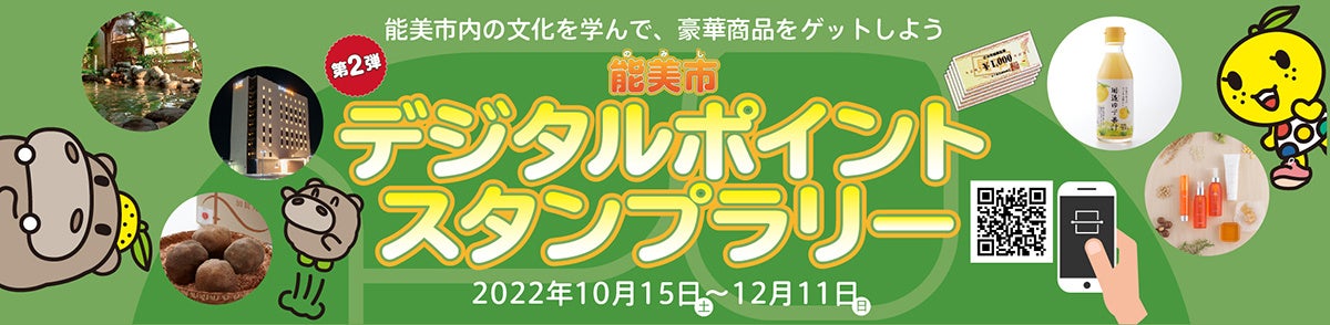 条件を満たすと、辰口温泉宿泊券や能美市の特産品等の豪華景品が当たる抽選に応募できます