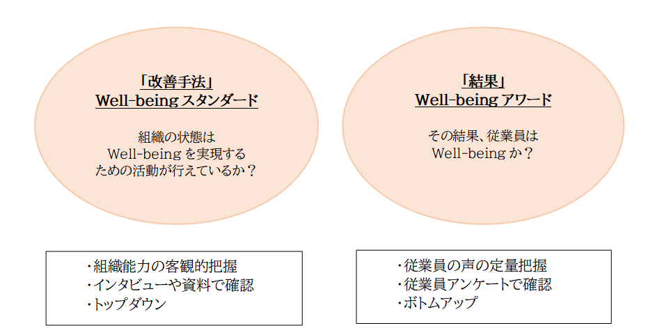 このアワードは、従業員アンケート調査(Well-being 診断)結果をランキング化して上位組織を表彰するものです。本アワードへ参加することで、自社のアンケート結果を国内平均や上位組織と比較でき、従業員の状態を把握することができます。これに加え、Well-beingスタンダードの提供開始によって、Well-beingを目指す組織に対し、さらに組織の状態の把握、またマネジメントにおける改善手法を提供することが可能となります。