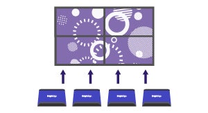 複数のプレーヤーをLANケーブルで接続することで、精度の高い同期再生が可能です。多画面を使用した迫力あるサイネージを簡単に構築できます。