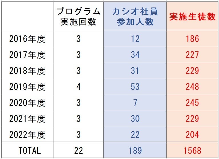 カシオ計算機と協働する「企業の子ども応援プロジェクト」は、2016年から始まり今年で8年目、23回目のプログラム実施を迎え、過去に計1,568名の児童生徒が受講、のべ189名の社員が参加しました。社会の第一線で働く大人との出会いの中で、子どもたちが多様な生き方を知り、勇気と自信を持って自分らしい未来を選択できるようになることを狙いとしています。本プロジェクトは、渋谷区教育委員会の推進する渋谷区立小中学校を対象とした探究学習の取り組み「シブヤ未来科」の一環として実施されます。