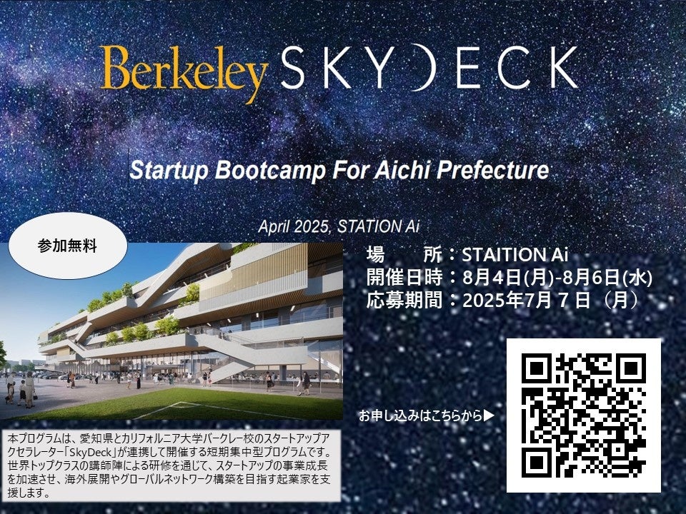 STATION Ai初!愛知から世界へ、スタートアップを支援する「米国UCバークレー校発アクセラSkyDeck」の参加者を募集します!