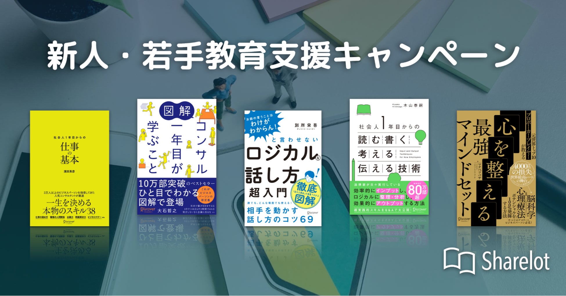新人・若手教育支援キャンペーンにお申し込みいただいた先着20社の企業様に、Sharelot上で以下の5冊の電子書籍をプレゼントします。