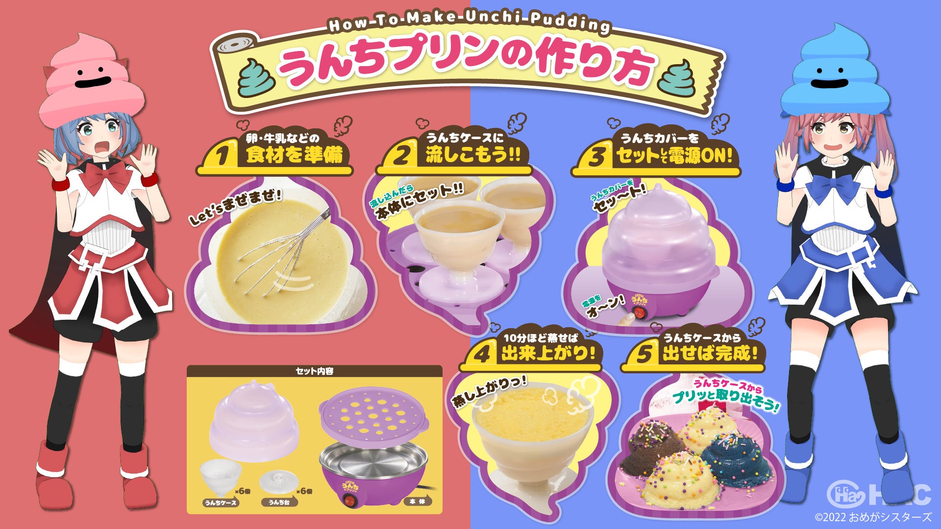 2022年5月より大人気"うんち尻(しり)~ず"の「わっしょい!うんち焼き」に次ぐ第二弾『やったぜ!うんちプリン』が新登場!プリンッ、プリンのうんち型プリンを作って盛り上がろう!カラフルに着色したり、チョコソースをかけたり、可愛いらしい見た目で自分だけのうんちプリンにアレンジ。