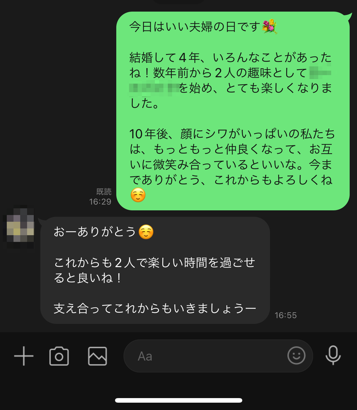 - ふだんから感謝はしているのですが、やはり面と向かって言葉にするのは恥ずかしいですし照れます