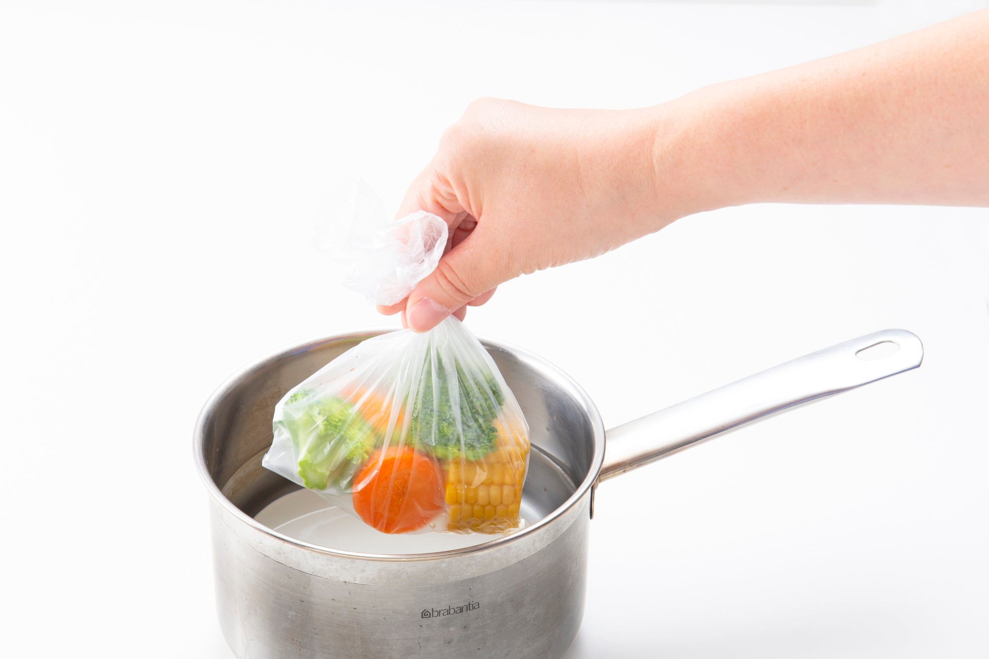 1976年に発売された日本初の家庭用箱入りポリ袋です。電子レンジの普及前から、冷凍冷蔵保存・湯せん・電子レンジ加熱に対応できる耐熱ポリ袋として、家庭での食品保存や加熱を簡便に行える生活用品として長く親しまれてきました。(耐熱:120℃/耐冷:-30℃)