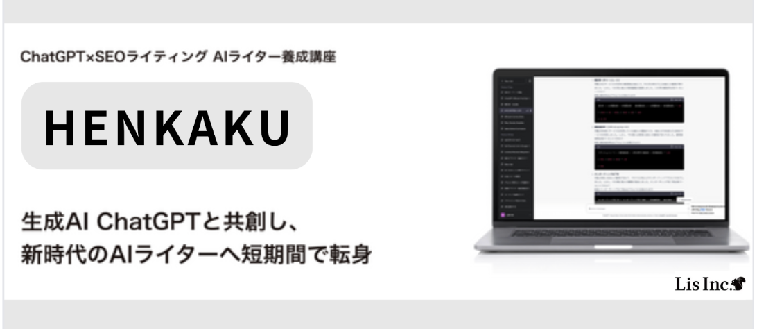上記の背景から、株式会社Lisは生成AIを活用したSEOライター養成講座「HENKAKU」を立ち上げました。