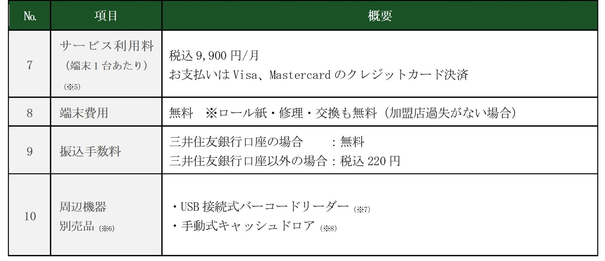 初期導入費:無料、サービス利用料:9,900円(税込)キャッシュレス決済手数料:2.70%~※2