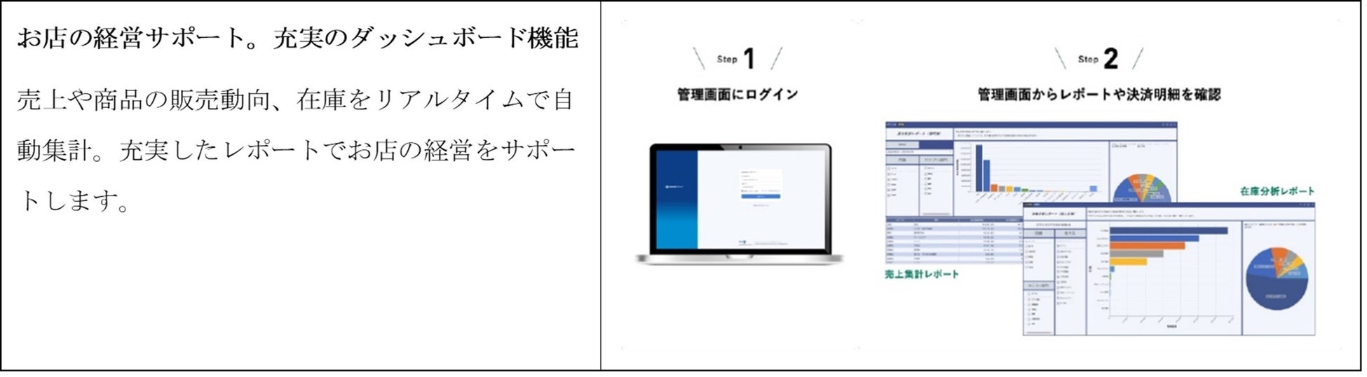 一方、中小事業者の店舗経営においては、仕入コストの上昇に伴う収益低下や値上げに伴う売り上げへの影響懸念の増加、2023年10月より導入されるインボイス制度など、新たな課題への対策が求められています。そこで、SMCC、SGP、SMFLは、手軽に扱えるPOSレジアプリの機能を「stera pack」に組み合わせ、新たなパッケージプラン「stera pack POS」として、中小事業者におけるキャッシュレス対応と合わせてお得に提供いたします。これにより、販売動向・在庫の分析による収益改善や、インボイス制度に即した適格簡易請求書の発行対応などが可能になります。