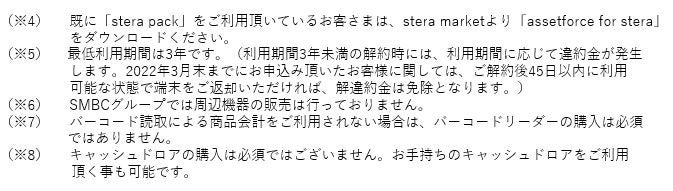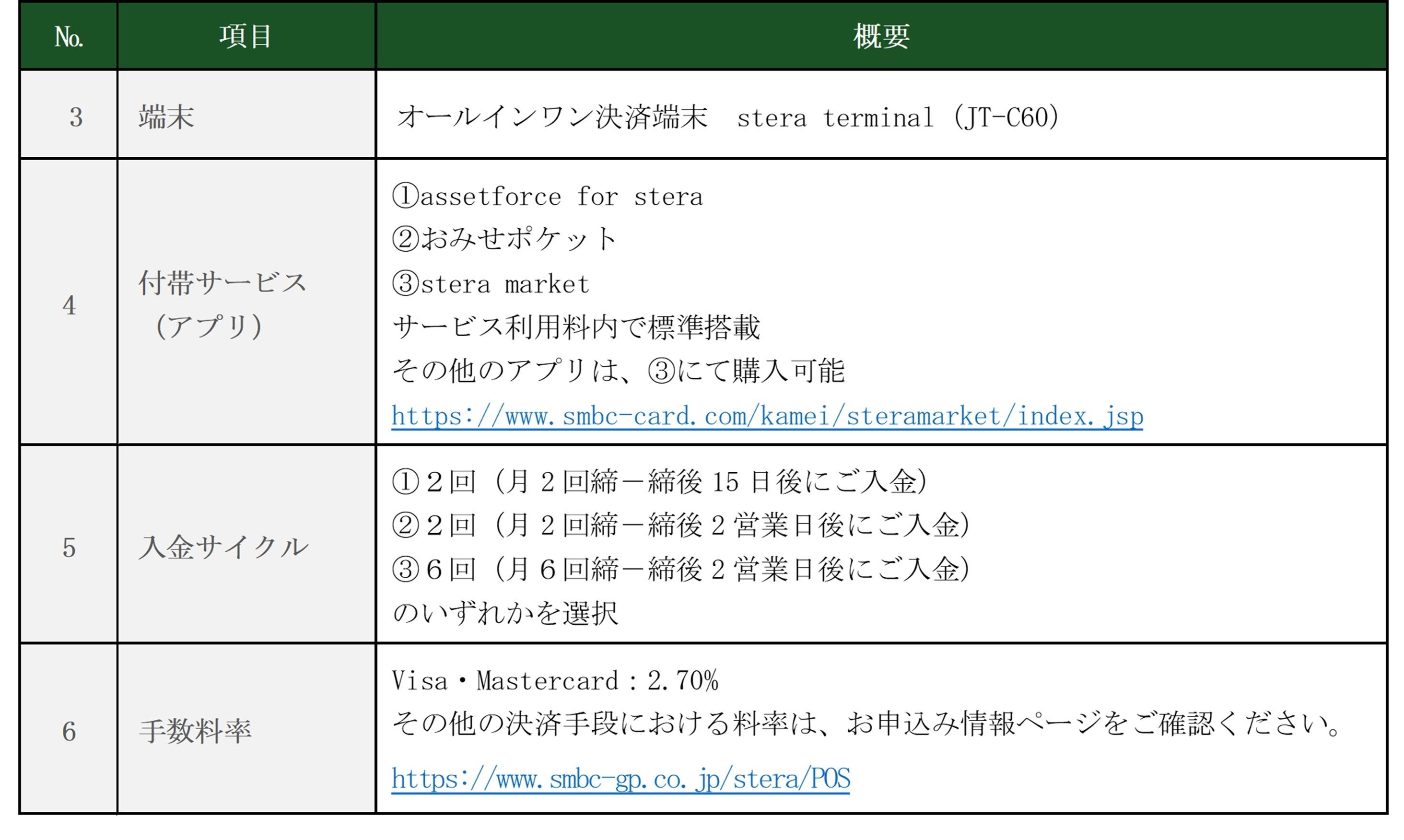三井住友カード株式会社(代表取締役社長:大西 幸彦、以下「SMCC」)、SMBC GMO PAYMENT株式会社(代表取締役社長:田中 靖剛、以下「SGP」)、および三井住友ファイナンス&リース株式会社(代表取締役社長:橘 正喜、以下「SMFL」)は、小売業・調剤薬局を中心とした中小事業者のデジタルトランスフォーメーション(以下「DX」)支援やインボイス制度※1への対応強化を目的として、SMCCとSGPが提供している、オールインワン決済端末stera terminalを手軽にご利用いただくためのパッケージプラン「stera pack」に、SMFLが提供しているPOSレジアプリ「assetforce for stera(アセットフォース・フォー・ステラ)」を標準搭載したお得な新パッケージプラン「stera pack POS」を、サービス利用料 9,900円(税込)にて2022年12月1日より提供開始いたします。