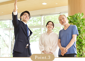 相談者様の幸せを第一に考えた老人ホームをご提案します。後悔頂かないように納得できるまで、選定した老人ホームの良い点、悪い点をお伝え。