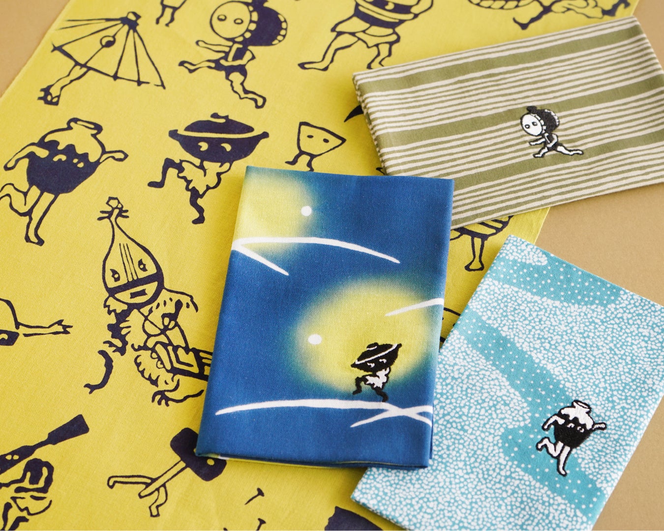 また、同時開催にてJR東京駅改札内にある、かまわぬの姉妹ショップ「かまいます グランスタ東京店」では、かまいます限定の刺繍サービス(有料)に新モチーフが登場!手ぬぐいの「つくもがみ」の柄に登場する「おなべ」「こづち」「つぼ」のつくもがみたちが、刺繍モチーフになりました。かまいます店内の手ぬぐいや風呂敷に刺繍できます。あなただけの“あやかしアレンジ”をぜひお楽しみください。